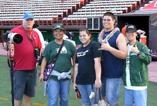 It wasn't that long ago that we enjoyed the sidelines of the Hula Bowl with our host, Punahou senior Abe Markowitz (l-r Barry, me, Winny, Abe, Jason).